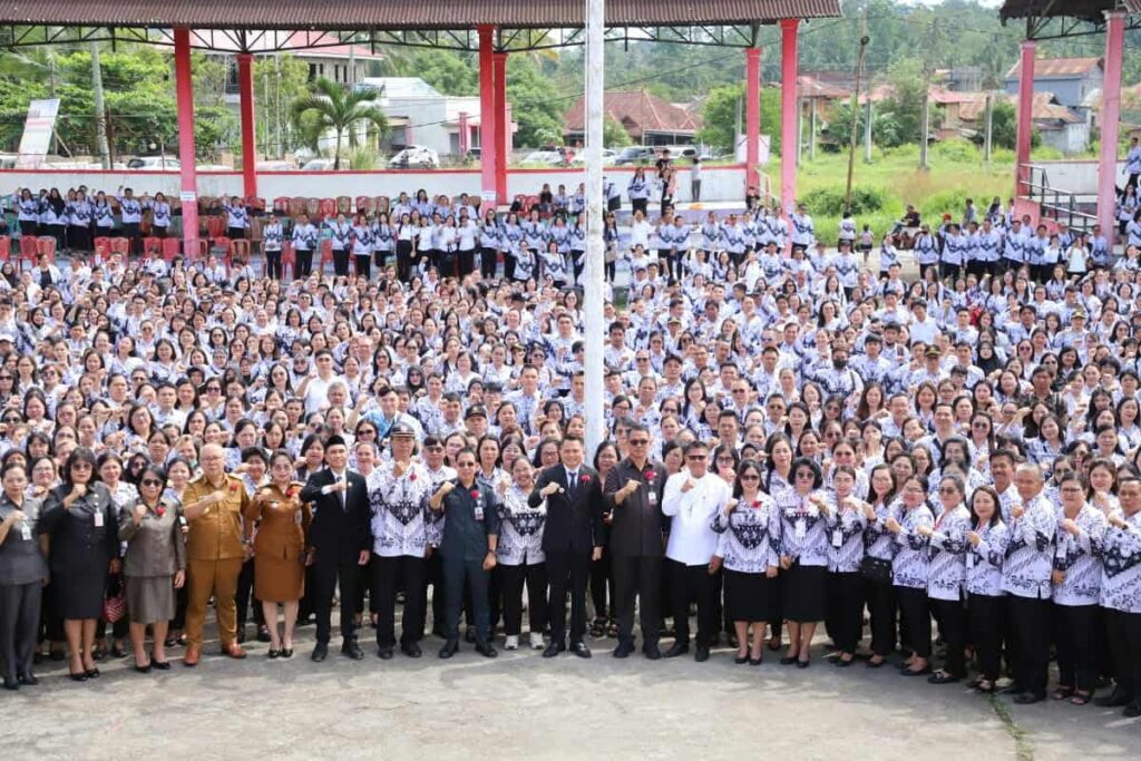 MITRA, Multiverum.com –-Bupati Minahasa Tenggara (Mitra) Ronald Kandoli bertindak sebagai Inspektur Upacara Peringatan Hari Guru Nasional (HGN) Tahun 2025 dan Hari Ulang Tahun (HUT) Persatuan Guru Republik Indonesia (PGRI) ke-80 yang digelar di Taman Kota Tombatu, Selasa (25/11).