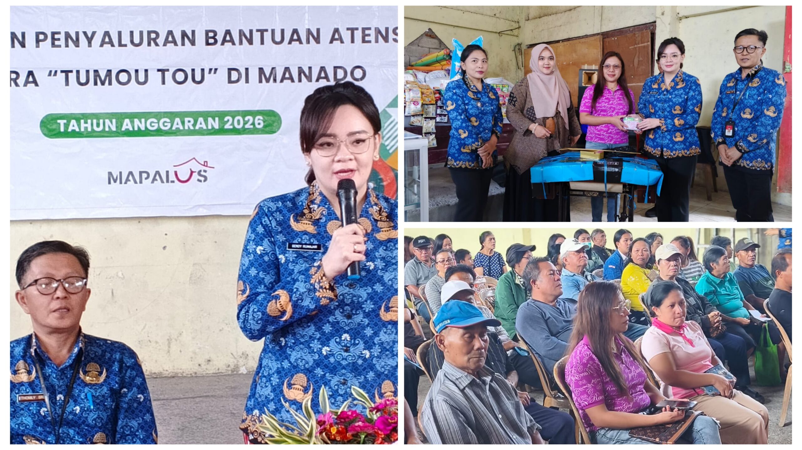 Hadir juga selaku pekerja sosial dari Sentra Tumou-Tou Manado.ibu Anisa Ika Nusafitri, Kepala kantor pos Tomohon, Bpk Romi Balderas. Kadis Sosial Kota Tomohon, Bpk Thomly Lasut, SH, MAP. Dan para penerima bantuan Atensi.